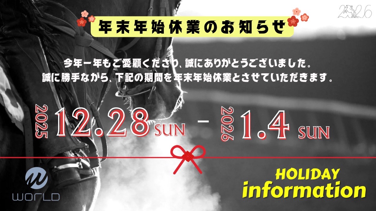 🎍年末年始休業日のお知らせ🎍 2025年12月20日(土) 今年も1年、WORLDをご愛顧いただき、誠にありがとうございます。今年も、多くのお客様とのご縁に恵まれ、心より感謝申し上げます。たくさんのお客様と出会えたことを、大変うれしく思っております。 誠に勝手ながら、下記の期間を・・・